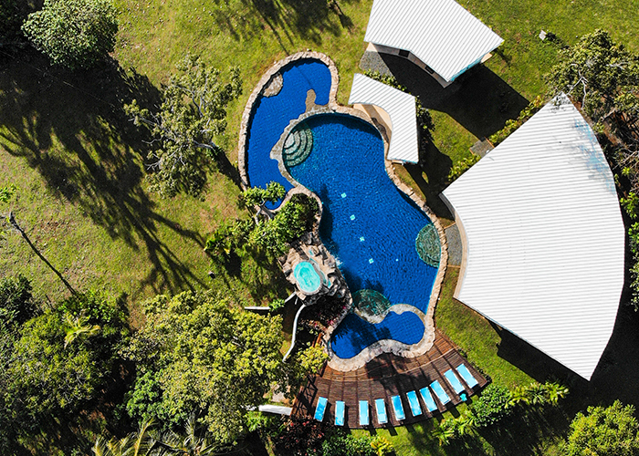 Rodeada de exuberantes jardines tropicales, perfecta para una tarde tranquila bajo el sol.